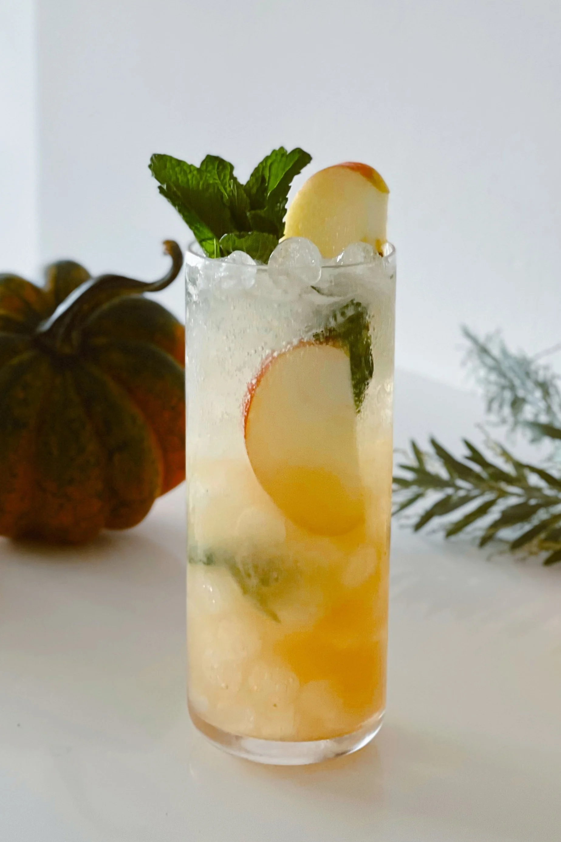 garnish: mint sprig + apple slices