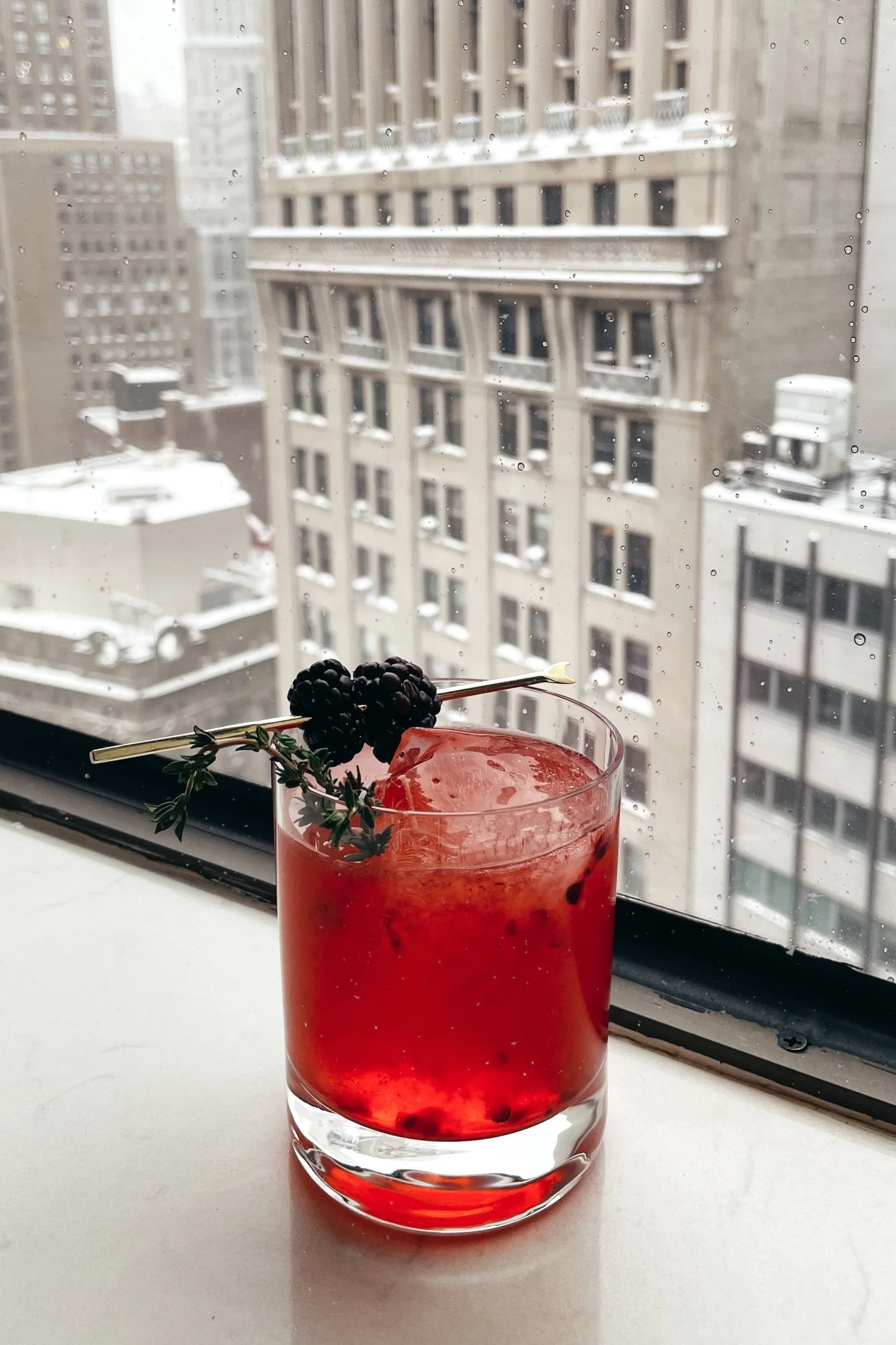garnish: 2 blackberries, thyme sprig