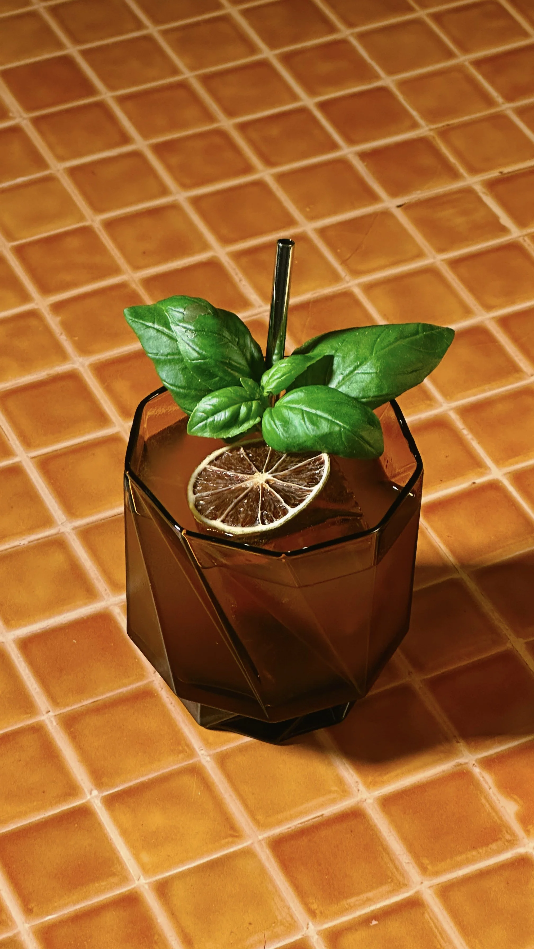 garnish: lime wheel and basil sprig
